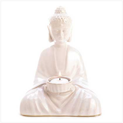 Ivory White Buddha Statue Tealight Candleholder Figure Feature