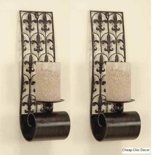 Large Tuscan Old World Metal Fleur De Lis Candle Wall Sconce Set of 2 Review