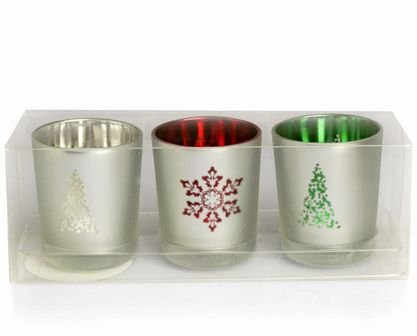 Set of 3 Christmas Metallic and Painted Votive Glass Candle Holders Review