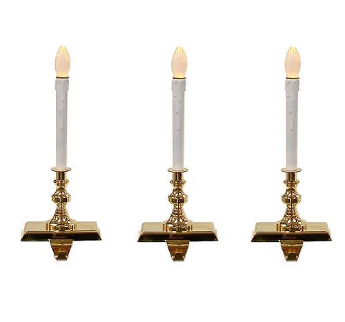 Set of 3 Lighted Brass Christmas Stocking Holders With Candle Lamps Review