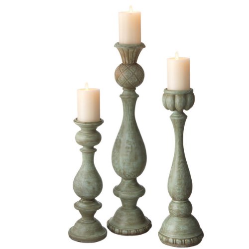 Set of 3 Weathered Pale Green Pillar Candle Holders 35" Review